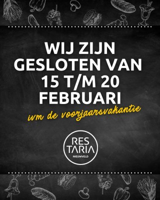 Let op! Wij zijn gesloten van 15 t/m 20 februari in verband met de voorjaarsvakantie.